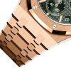 Unworn Audemars Piguet Royal Oak SELFWINDING CHRONOGRAPH “50TH ANNIVERSARY” 26240OR.OO.1320OR.04. 41 mm, Khaki green dial with “Grande Tapisserie” pattern, khaki green counters, pink gold applied hour-markers and Royal Oak hands with luminescent coating, 18-carat pink gold case, glareproofed sapphire crystal and caseback, screw-locked crown, 4401 calibre, Selfwinding movement, 70 h power reserve, 40 jewels, 18-carat pink gold bracelet with AP folding clasp. Water resistant to 50 m.