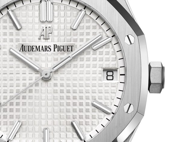 Unworn Audemars Piguet Royal Oak SELFWINDING 15500ST.OO.1220ST.04. 41 mm, Silver-toned dial with “Grande Tapisserie” pattern, white gold applied hour-markers and Royal Oak hands with luminescent coating, Stainless steel case, glareproofed sapphire crystal and caseback, screw-locked crown, 4302 calibre, Selfwinding movement, 70 h power reserve, 32 jewels, Stainless steel bracelet with AP folding clasp. Water resistant to 50 m.
