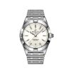 Breitling Chronomat Quartz 32 Ladies Watch, 32mm, brushed and polished Stainless Steel case, Reference A77310101A2A1. This model has White dial with recognizable silver tone “B” emblem below the 12 o’clock position. Polished Stainless Steel hands with luminous fill. The second hand has a special design, namely the arrowhead with luminescent filling and the manufacturer’s logo “B” on the other side. Fine printed minute/seconds track with 5-minute Arabic numerals intervals on the outer perimeter. Date window located at the 6 o’clock position. The watch has Stainless steel non screw-locked crown with a two gaskets. The crown with a ribbed edge for a comfortable grip and from the butt Breitling logo. The dial closed by a Cambered sapphire crystal, glareproofed both sides. The screwed solid case back is made of Stainless Steel. The watch is equipped fixed Stainless Steel bezel with large dot at the origin. The watch is SuperQuartz™, thermocompensated quartz electronic, EOL indicator, Breitling in-house caliber 77 contains approximate 3 to 4 years. This model presented on a Featuring Breitling’s iconic and comfortable “Rouleaux” bracelet of brushed and polished Stainless Steel with a butterfly clasp. The water resistance is up to 100m/330ft.