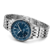 Unworn watch Breitling Navitimer Automatic 41, Reference A17329161C1A1 – epitomizes the essence of adventure and precision in horology. With its timeless design and cutting-edge engineering, this watch is a true companion for the modern explorer, whether navigating the skies or conquering the urban landscape. This model has Blue dial with a fine sunray finish and Tachymeter scale on dial flange. Recognizable Silver tone “B” emblem below the 12 o’clock position. Attract attention polished luminous silver-tone hour and minute hands and Red-tipped seconds hand. On dial applied polished silver-tone index hour markers with luminous dots. On the outer edge of the dial, there is a Navitimer scale with minutes and seconds in small print. The watch has Stainless steel Pull/push non screw-locked crown with a two gaskets. The crown with a ribbed edge for a comfortable grip and from the butt Breitling logo. The dial closed by a Cambered sapphire crystal, glareproofed both sides. The screwed solid case back is made of Stainless Steel. The dial is framed by a signature bi-directional fluted Stainless Steel bezel with slide rule and a scalloped profile for easy grip. A masterpiece of engineering, Breitling’s in-house Caliber 17 contains 26 jewels and has an approximate power reserve of 38 hours, ensuring exceptional precision, allowing you to conquer every moment with unwavering precision. This model presented on a brushed and polished Stainless Steel Navitimer bracelet with a Stainless Steel Push Button Folding Clasp. The water resistance is up to 30m/100ft.