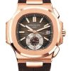 40.5mm 18K rose gold case, sapphire crystal back, screw-down crown, black-brown dial with gold applied hour markers with luminescent coating, self winding caliber CH 28-520 C movement with 60-minute and 12-hour monocounter chronograph and date, approximately 55 hour of power reserve, matt dark brown alligator strap with Nautilus fold-over buckle. Water resistant to 120 meters.