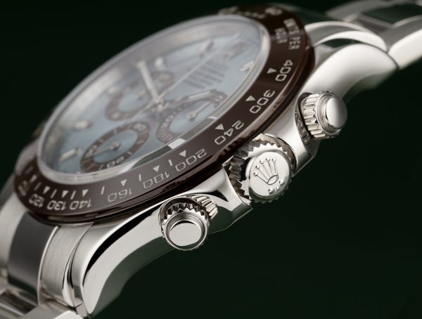 A key part of the model’s identity is the bezel moulded with a tachymetric scale for measuring average speeds of up to 400 miles or kilometres per hour. The monobloc Cerachrom bezel in high-tech ceramic offers a number of advantages: it is corrosion resistant, virtually scratchproof and the colour is unaffected by UV rays. This extremely durable bezel also offers an exceptionally legible tachymetric scale, thanks to the deposition of a thin layer of platinum in the numerals and graduations via a PVD (Physical Vapour Deposition) process. The monobloc Cerachrom bezel is made in a single piece and holds the crystal firmly in place on the middle case, ensuring waterproofness.