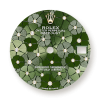 - Dial color: Olive green dial with floral motif and 24 Diamonds in 18k Yellow Gold settings