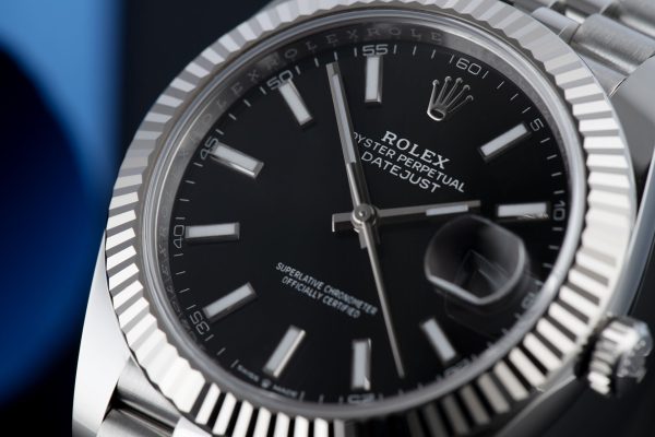 The Rolex fluted bezel is a mark of distinction. Originally, the fluting of the Oyster bezel had a functional purpose: it served to screw the bezel onto the case helping to ensure the waterproofness of the watch. It was therefore identical to the fluting on the case back, which was also screwed onto the case for waterproofness, using specific Rolex tools. Over time, the fluting became an aesthetic element, a genuine Rolex signature feature. Today the fluted bezel is a mark of distinction, in gold on this Datejust 41.