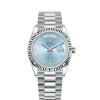 Dial color: Ice blue dial with a applied polished 18k White Gold Roman numerals as hour markers