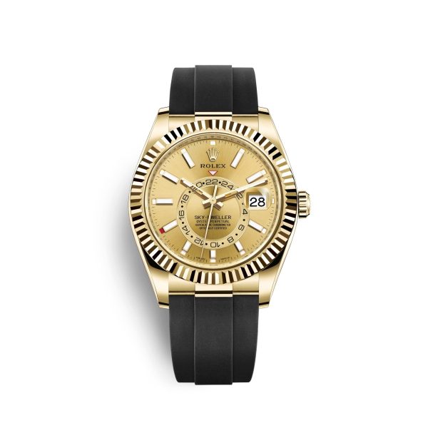 Unworn classic watch Rolex Sky-Dweller 42mm, 18k Yellow Gold, Oysterflex, Ref# 326238-0007 – luxury, elegance and practicality.