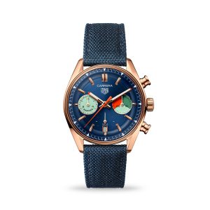 Set sail with the TAG Heuer Carrera Skipper, a 39mm masterpiece in 18K 5N solid rose gold. Its blue dial features a unique regatta countdown. Learn more.