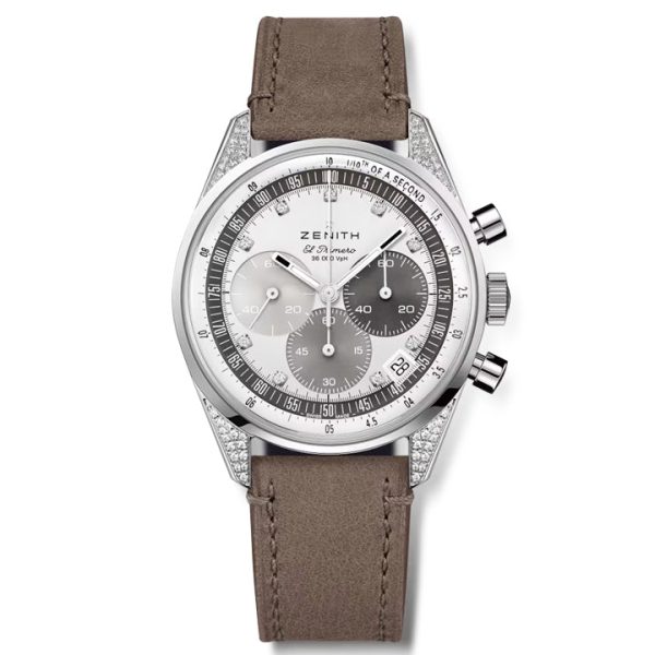 The CHRONOMASTER Original is crafted in a 38mm steel with diamond-set lugs case in the same proportions as the A386, paired with silver-toned velvet-finish dial with counters in 3 shades of taupe. Powered by the El Primero 3600 automatic high-frequency chronograph movement with 1/10th of a second chronograph function and a power reserve of 60 hours.