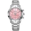 The CHRONOMASTER Sport Pink is crafted in a 41mm steel case with a polished steel bezel, paired with a metallic pink dial and a steel bracelet. Powered by the El Primero 3600 automatic high-frequency chronograph movement with 1/10th of a second chronograph function and a power reserve of 60 hours. Limited edition of 500 pieces, with proceeds from the sale benefitting the Susan G. Komen® foundation.