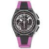 The DEFY Extreme E Energy X Prix limited edition 1/100th of a second chronograph inspired by the Extreme E electric rally race in Punta del Este, Uruguay. Crafted in a robust carbon fiber case with titanium elements. Powered by the El Primero 21 1/100th of a second automatic high-frequency chronograph calibre. Purple recycled tires Velcro strap.